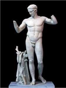 Ο μαρμάρινος Διαδούμενος(=αυτός που φέρει διάδημα) από τη Δήλο στο Εθνικό Μουσείο της Αθήνας έχει τον μανδύα του νικητή και τη φαρέτρα του πάνω στο κούτσουρο του δέντρου. Είναι ο νικητής ενός αθλητικού διαγωνισμού σε αγώνες, γυμνός ακόμα μετά τον αγώνα και σηκώνοντας τα χέρια του για να δέσει το διάδημα, μια κορδέλα που προσδιορίζει τον νικητή και η οποία στο χάλκινο πρωτότυπο περίπου του 420 π.Χ. θα ήταν μια μπρούτζινη κορδέλα. Αποτελεί τύπο αγάλματος που αποδίδεται στον γλύπτη Πολύκλειτο, και ένα από τα γνωστότερα πρότυπα της αρχαίας ελληνικής γλυπτικής που όλοι παρουσιάζουν αυστηρά εξιδανικευμένες αναπαραστάσεις νεαρών ανδρών αθλητών με πειστικά νατουραλιστικό τρόπο.